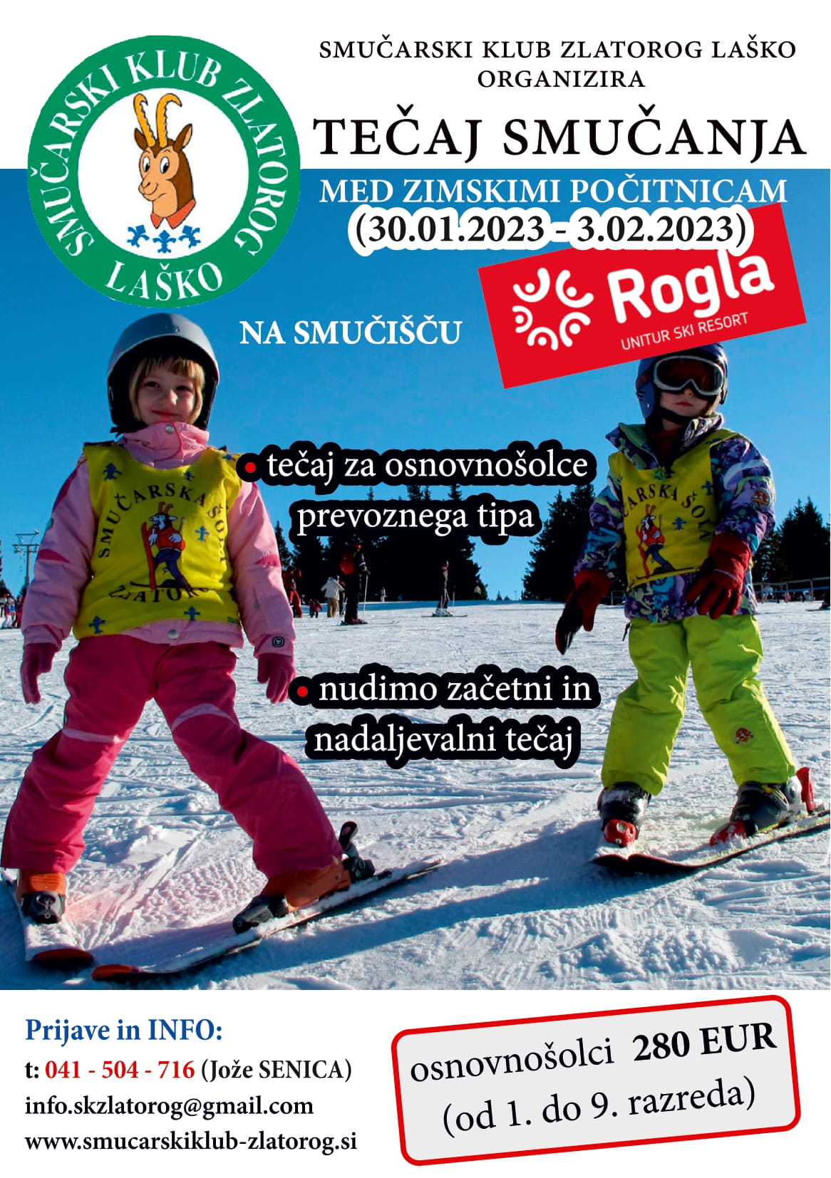 Bližajo se zimske počitnice in s tem tudi tečaji smučanja. Enega organizira tudi Smučarski klub Zlatorog Laško. Za več informacij poglejte njihovo spletno stran (http://smucarskiklub-zlatorog.si/) ali jih pokličite na 041 504 716.